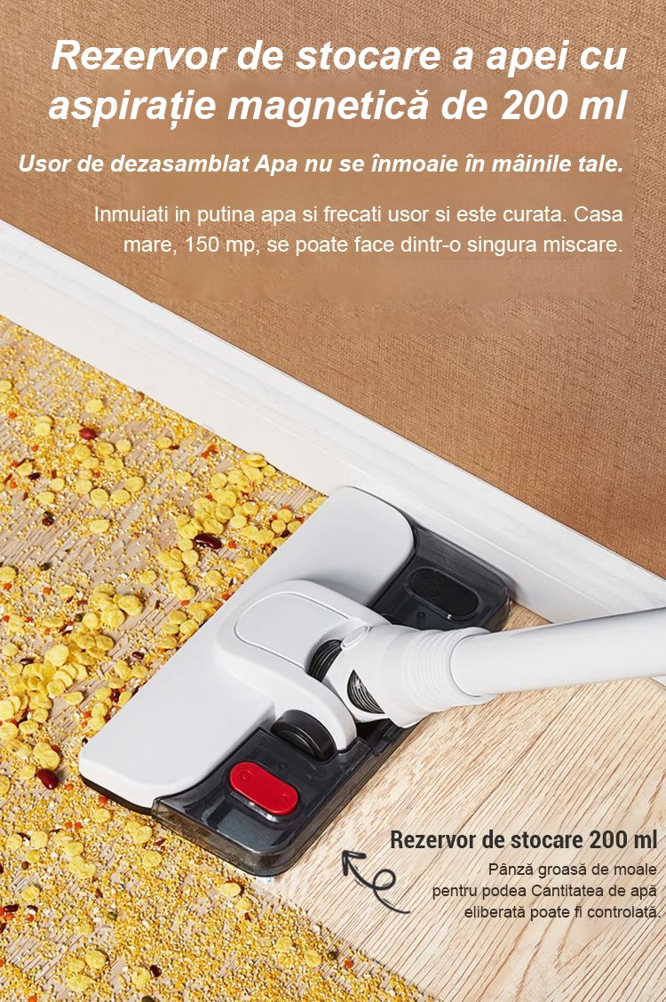 Aspirator de mână fără fir cu funcție de aspirare și ștergere.